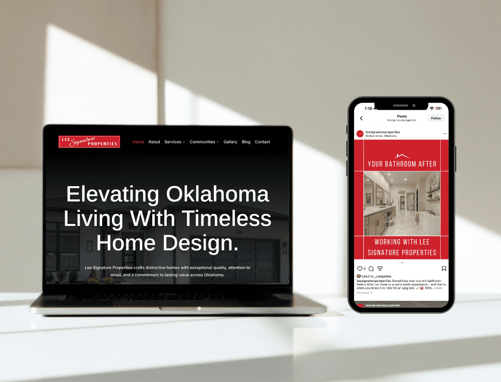 Lee Signature Homes’ digital presence was designed to showcase their dedication to craftsmanship, thoughtful design, and custom home excellence, combining a sophisticated website with strategic social media content that highlights their builds and positions the brand as a trusted custom home builder.